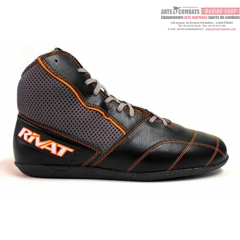 Chaussures de boxe française RIVAT UPPERCUT, semi-montante, dessus cuir souple et arrière en nylon Mesh souple à maille large.