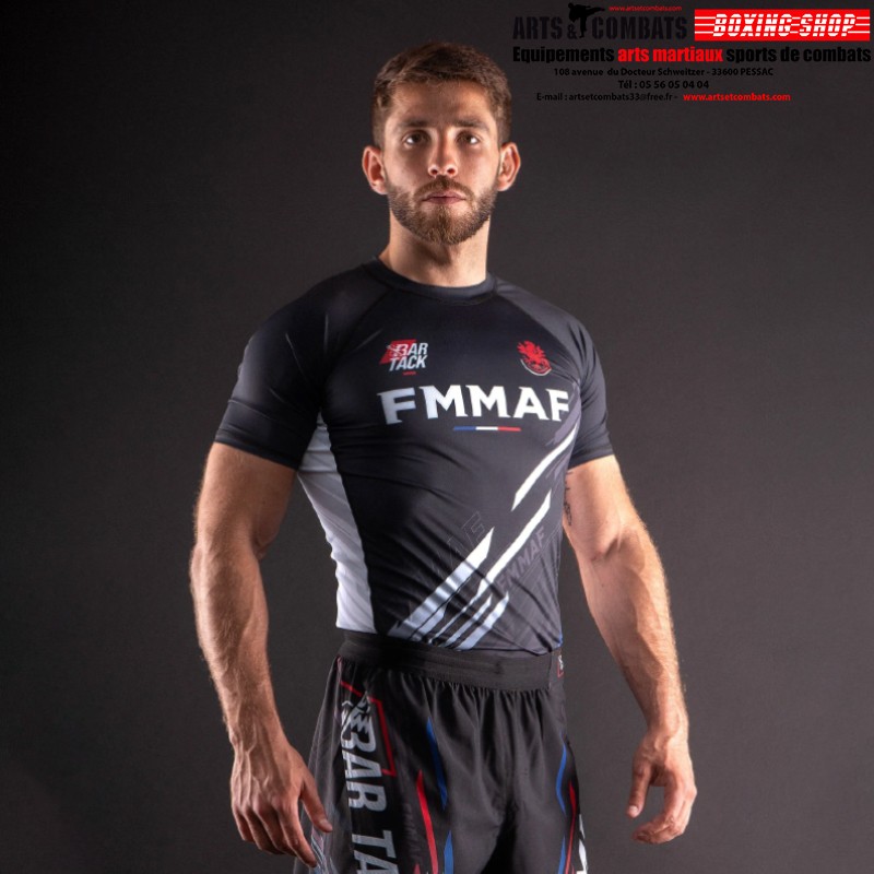 Conçu en étroite collaboration avec la Fédération Française de MMA, le Rashguard officiel Bar Tack x FMMAF vous permet d'afficher votre grade et de respecter toutes les normes requises afin de participer aux compétitions officielles organisées par la FMMAF.