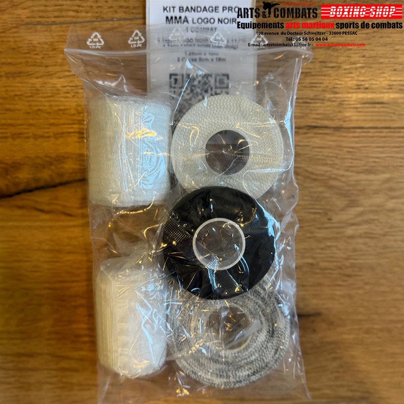 Ce kit contient la quantité nécessaire en tape et en gaze pour se conformer aux règles techniques du MMA.